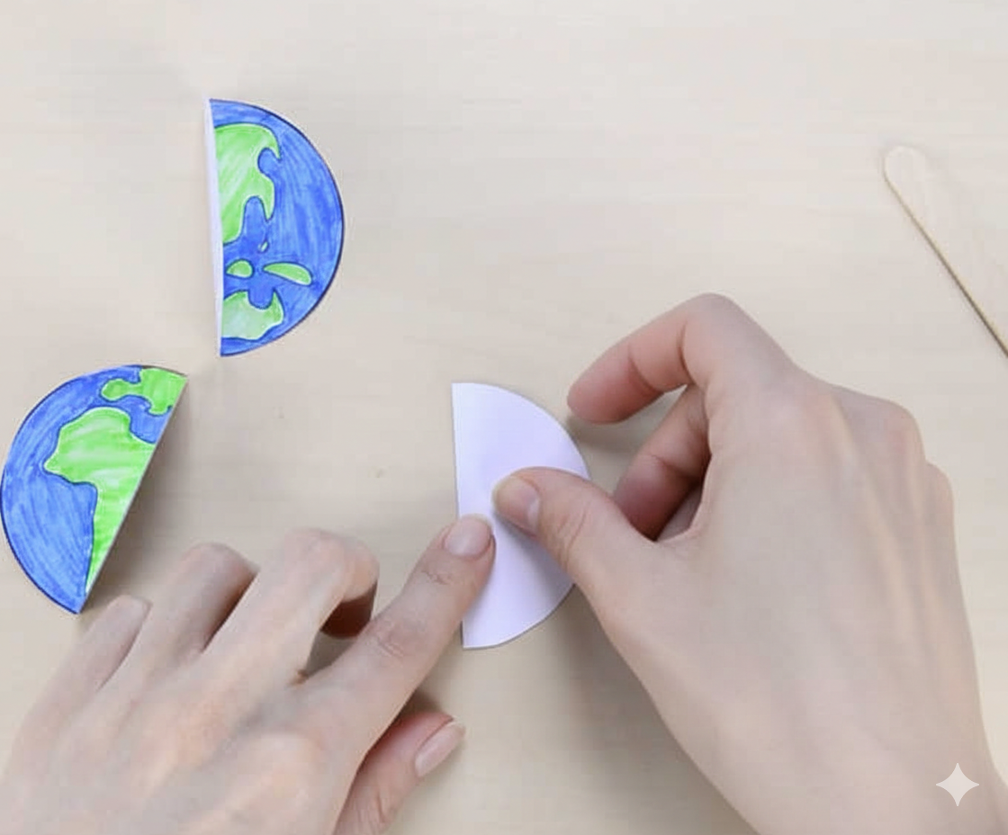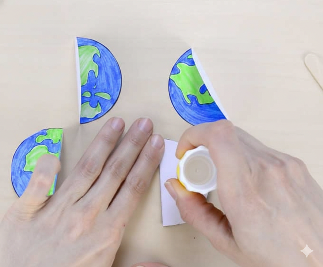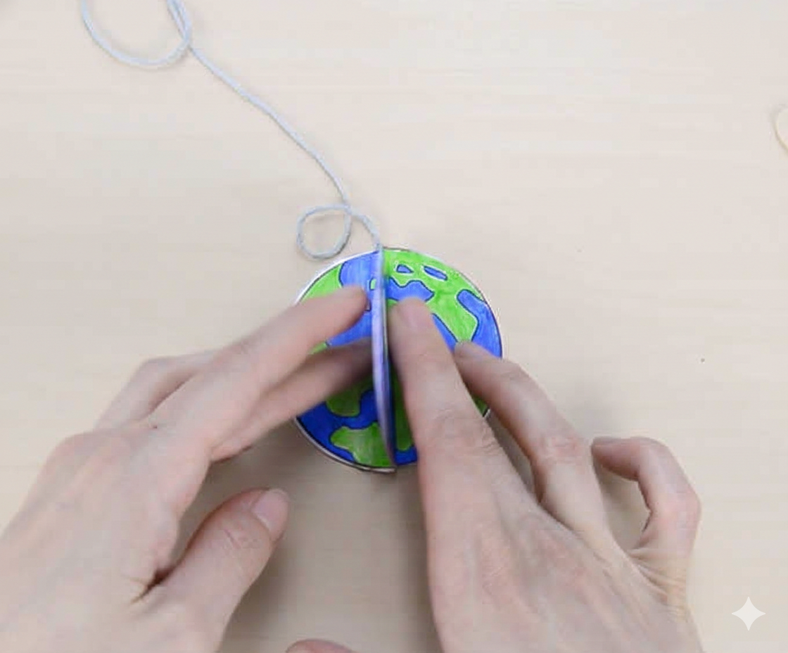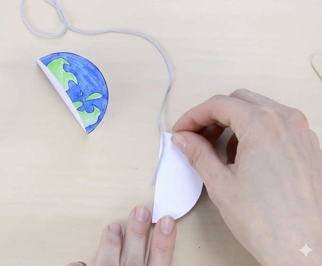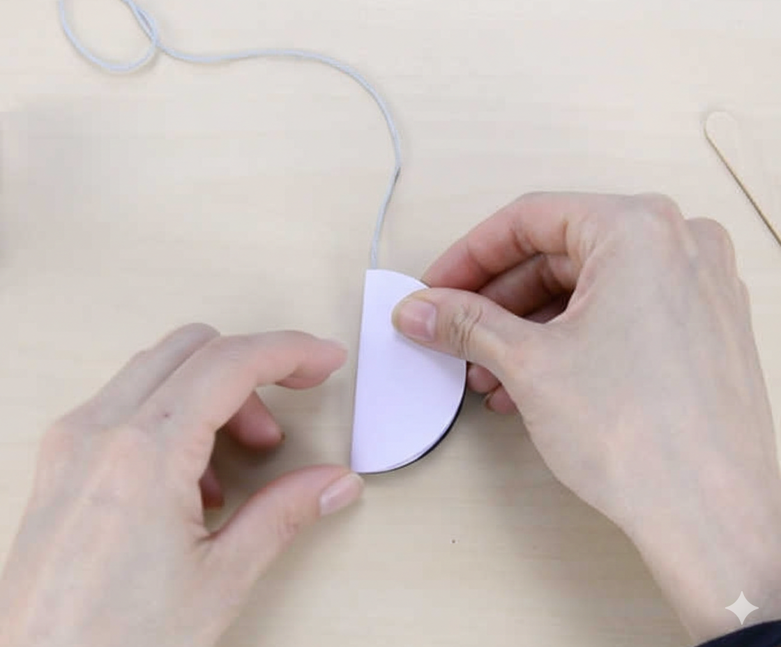 สามารถติดเชือกตอนนี้ได้เลย หรือเมื่อติดกาวอีกครึ่งวงกลมเข้าด้วยกันแล้ว