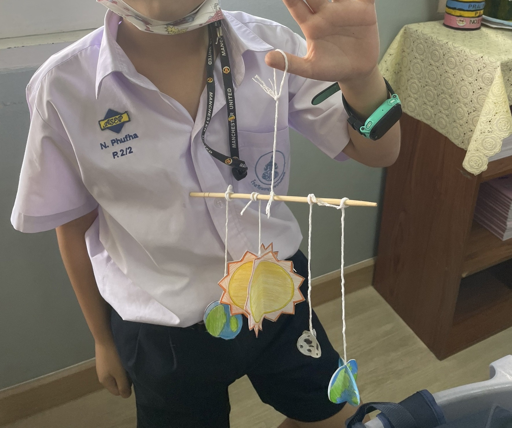 ทำซ้ำกับดาวอื่นทั้งหมดแล้วผู้กเข้ากับคาน (ตะเกียบ 1 ข้าง) และทำการปรับสมดุลคาน